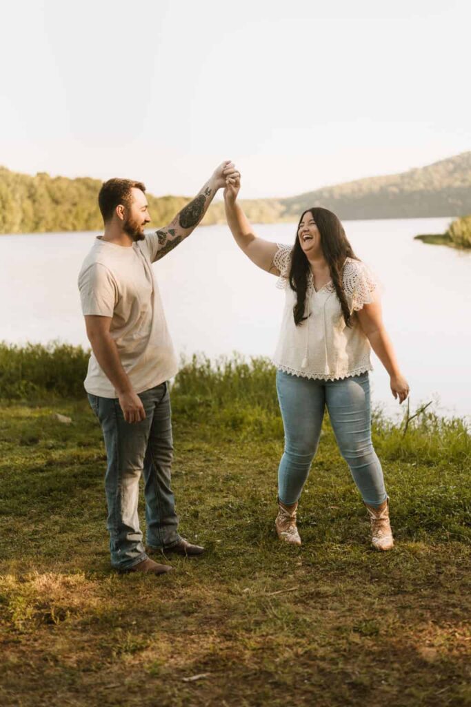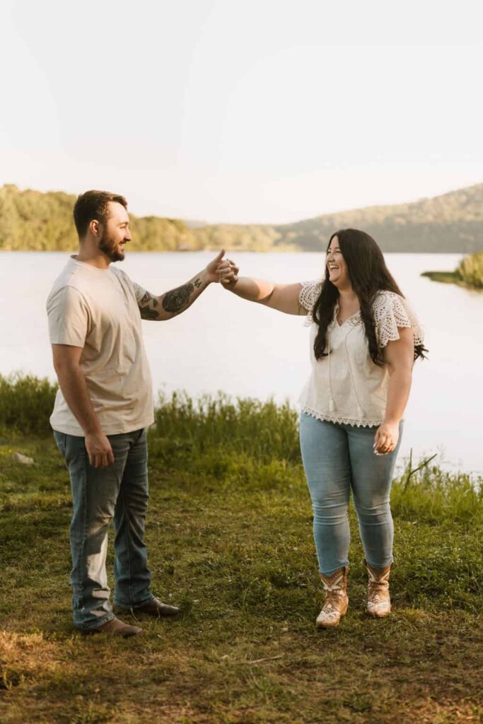 The lake is one of the most popular engagement photo locations in the Branson area, especially for couples who are drawn to that warm, golden-hour look and the water.